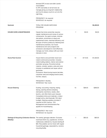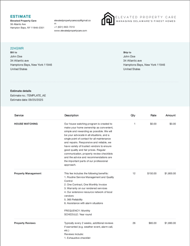 The Annual Estimate serves as the complete roadmap for your Elevated Property Care service delivery. Each client receives a custom estimate, issued after an initial property visit to accurately assess all utility, mechanical, and other needs (landscaping, pool service, etc.). This document thoroughly outlines all routine services—including comprehensive descriptions, pricing, and timing—so there are absolutely no surprises on service bills. Most importantly, clients maintain full control; you have the final say on what services to include or exclude based on your specific needs, budget, and priorities.